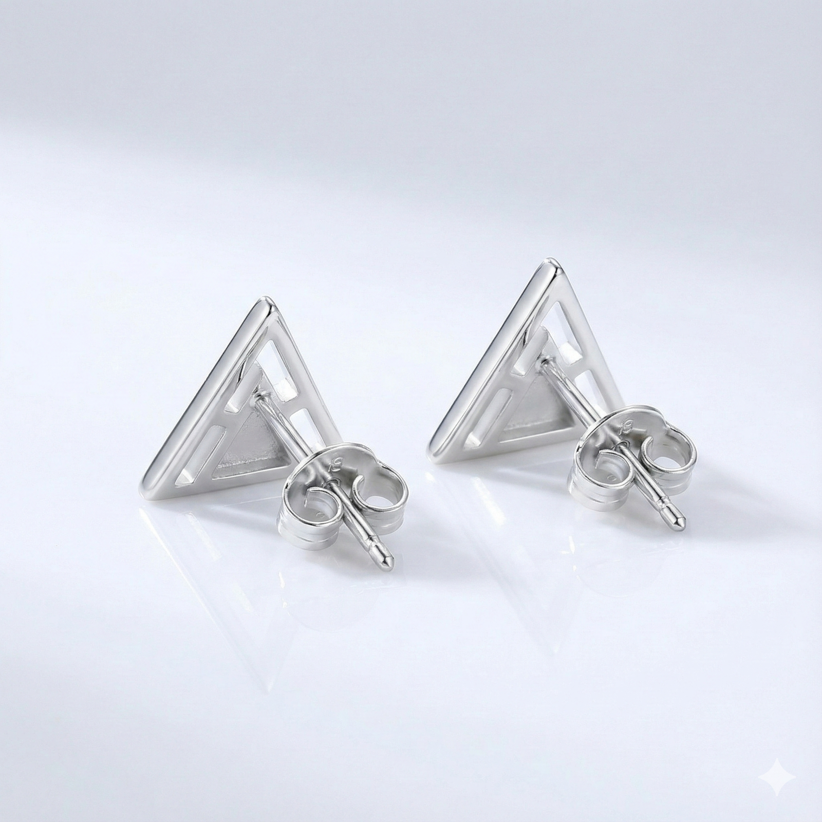 A fusion of architectural design and natural inspiration, these earrings feature a “nested triangle” motif that evokes the image of a sunlit mountain peak. The high-polish finish and precision cutouts provide a sophisticated, airy feel that is perfect for minimalist jewelry lovers.