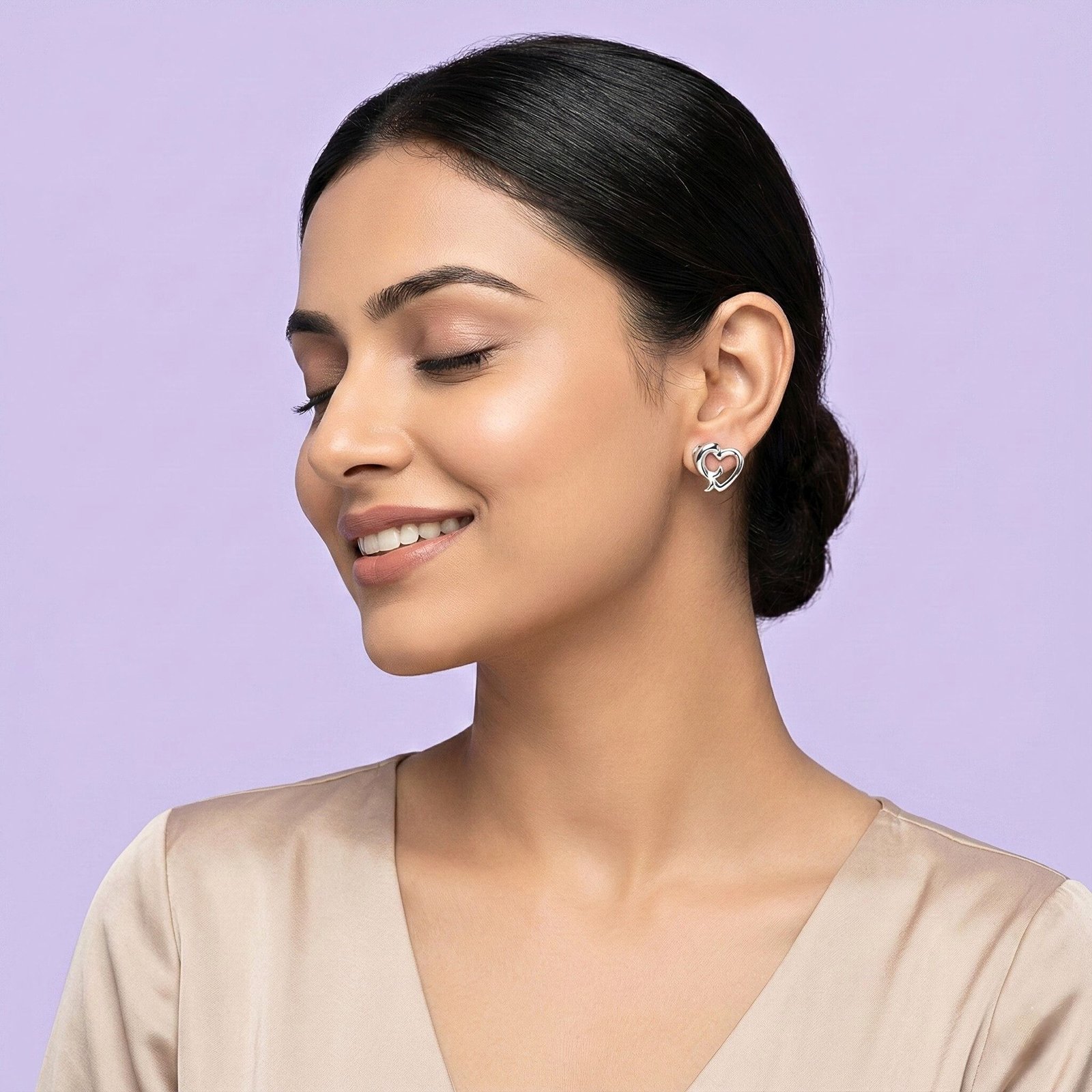 Each stud showcases a fluid open-heart silhouette that curls inward into a graceful swirl, adding dimension and movement to the piece. Crafted from premium 925 Sterling Silver, they boast a mirror-like shine that reflects light beautifully, brightening up your face instantly.