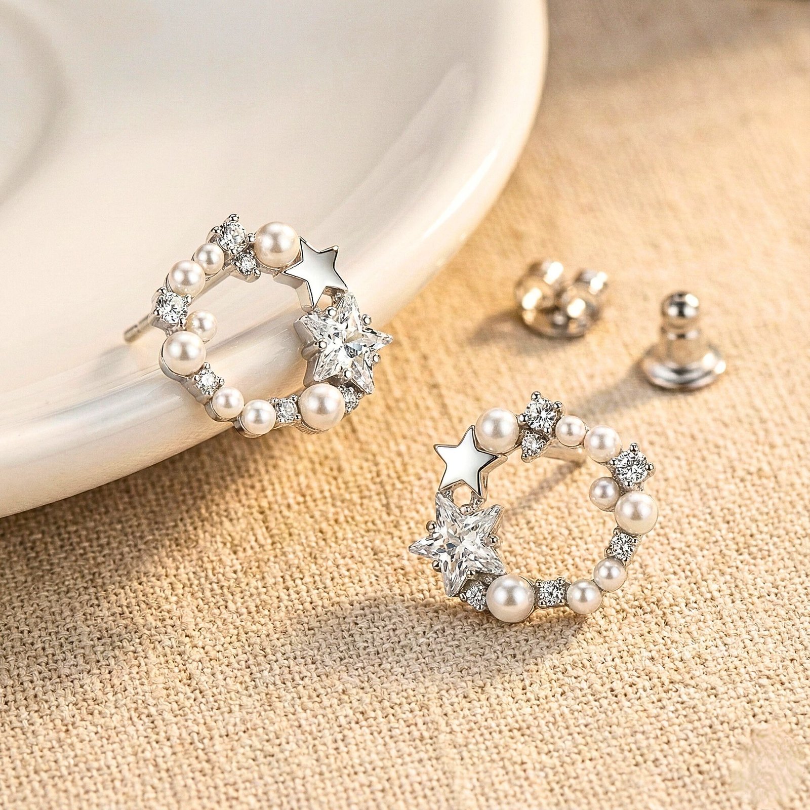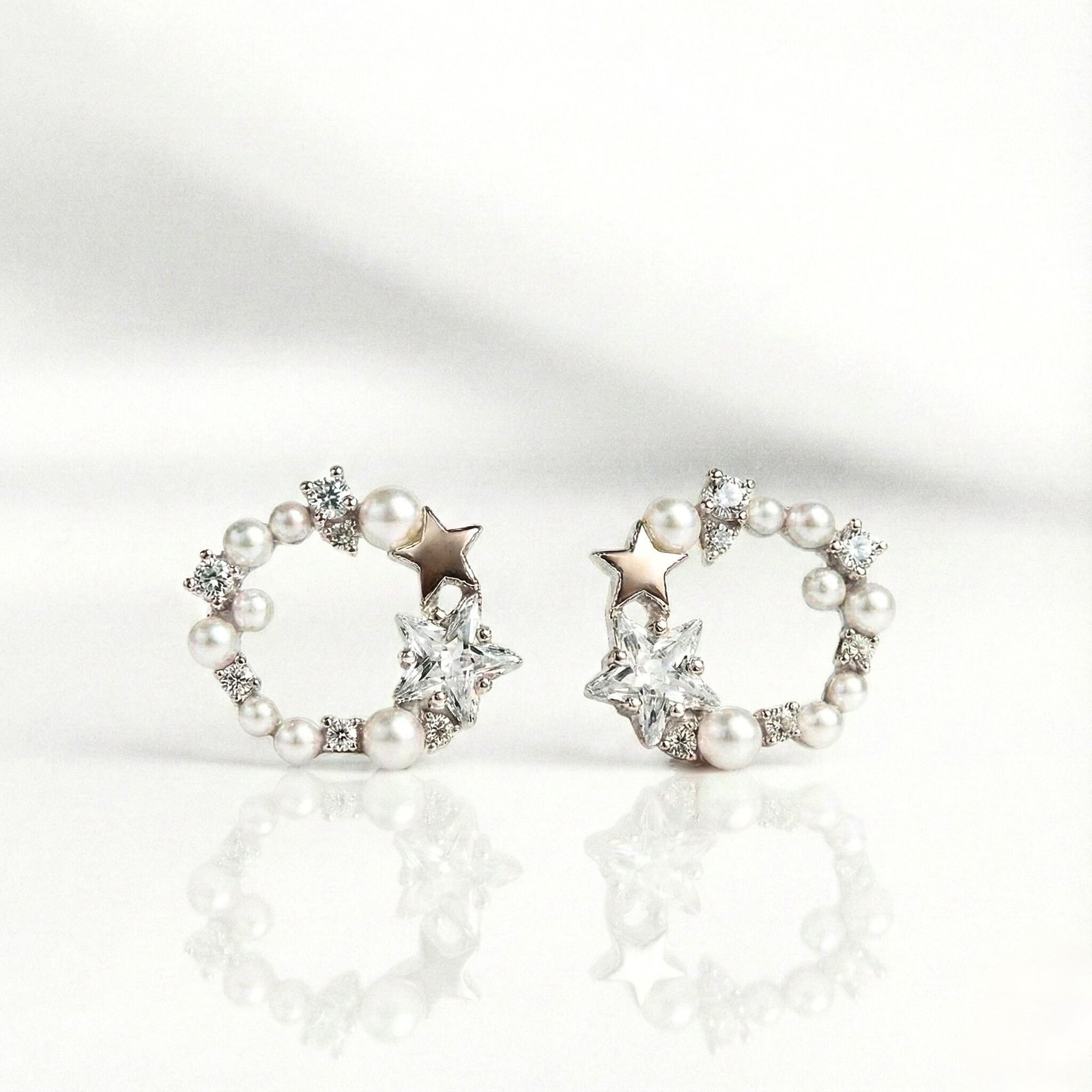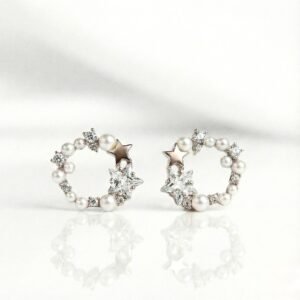 Be the first to review “Star & Pearl Wreath Stud Earrings with Sparkling Crystal Accents”