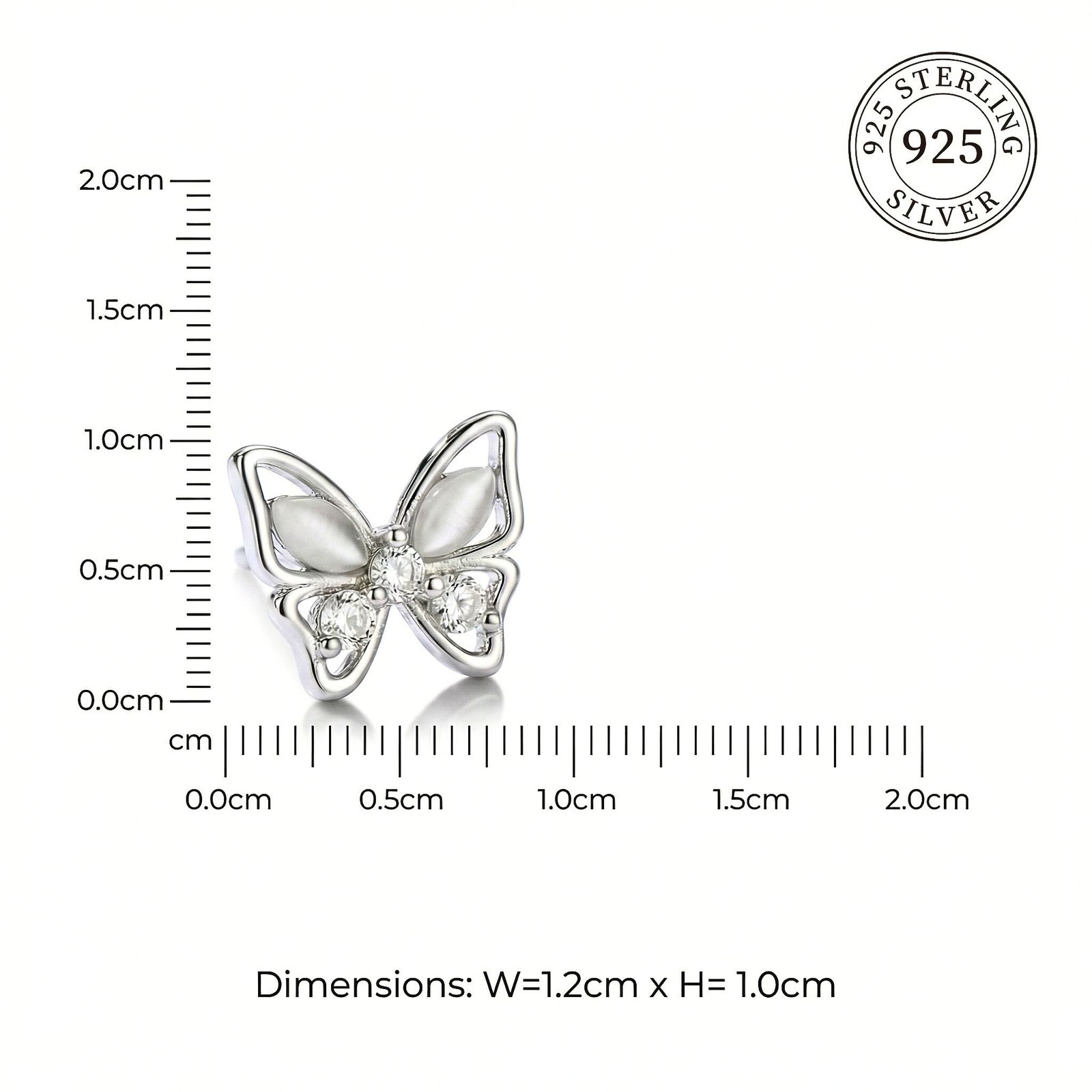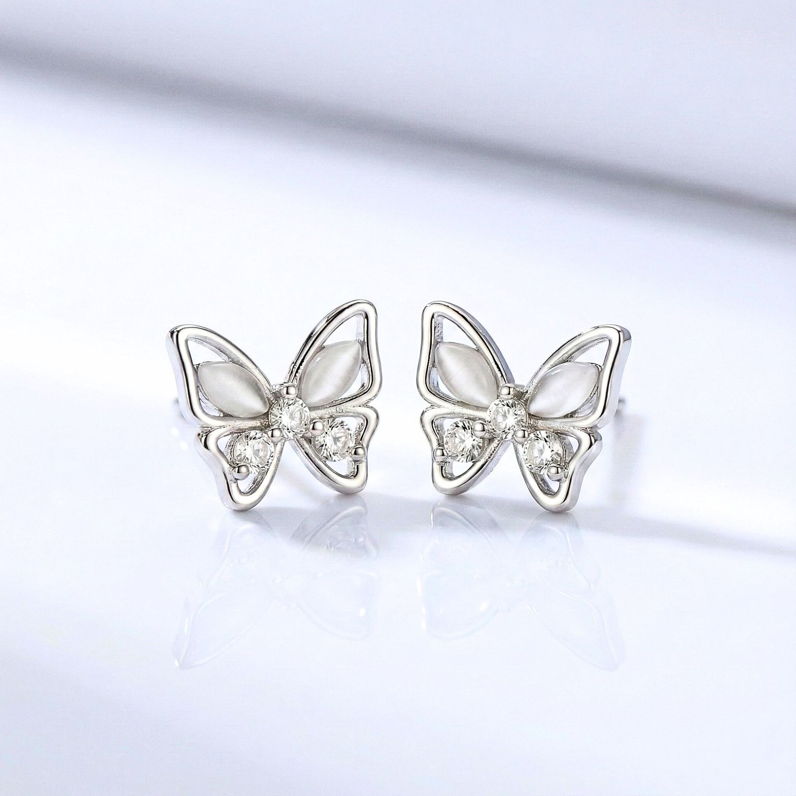 Dual-Stone Contrast: Features a stunning combination of smooth, pearlescent upper wings (Moonstone style) and brilliant-cut sparkling lower wings (Cubic Zirconia).